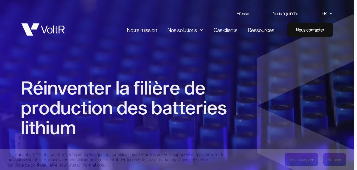 VoltR est un fabricant français de batteries lithium éco-conçues. Grâce un processus industriel rigoureux et sa technologie de pointe, VoltR récupère les cellules de batteries en fin de première vie, pour les réaffecter dans de nouvelles batteries adaptée à leur performance résiduelle. VoltR est ainsi en mesure de proposer des batteries made in France, éco-conçues et aussi performante que des batteries classiques.